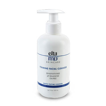 EltaMD Foaming Facial Cleanser contains a blend of amino acids that loosen makeup, remove excess oil and other surface impurities as well as in the pores!  This cleanser generates a think, rich foam that lifts impurities from the skin allowing them to be rinsed away.  Will leave your skin feeling fresh and clean without the feeling of being dried out!